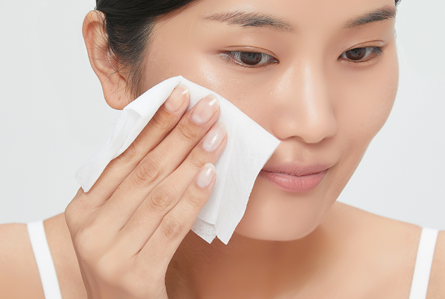 STEP 02 약 15분 후 화장 티슈, 세안 퍼프, 클렌징 티슈 등으로 깨끗하게 닦습니다.